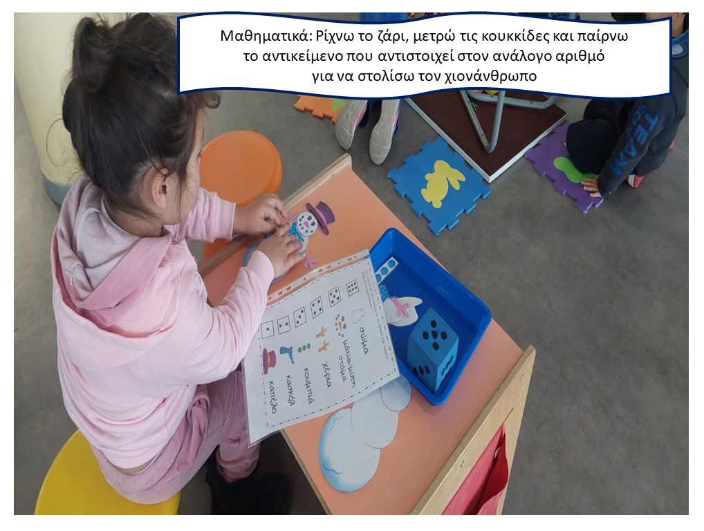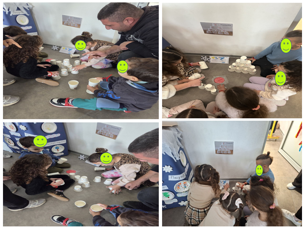 Με χαρά προσκαλέσαμε τους γονείς να έρθουν στο σχολείο και να παίξουν μαζί με τα παιδιά τους μέσα από μια σειρά χειμωνιάτικων δραστηριοτήτων. Ήταν μια όμορφη ευκαιρία να γνωρίσουν από κοντά τον τρόπο με τον οποίο δουλεύουμε στην τάξη, πώς αξιοποιούμε το παιχνίδι ως βασικό μέσο μάθησης και πώς μέσα από βιωματικές εμπειρίες υλοποιούνται οι παιδαγωγικοί μας στόχοι. Μέσα από μαθηματικές, προγραφικές και προαναγνωστικές δραστηριότητες, αισθητηριακά παιχνίδια και συνεργατικές δοκιμασίες, τα παιδιά καλλιεργούν γνώσεις, δεξιότητες και στάσεις, διαμορφώνουν τον χαρακτήρα τους και προετοιμάζονται ομαλά για να ανταποκριθούν στις απαιτήσεις του Δημοτικού σχολείου.