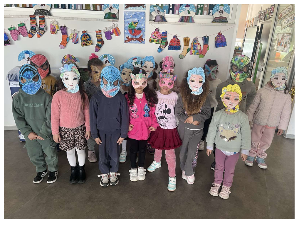 Τα παιδιά έφτιαξαν τις μάσκες τους και είναι έτοιμοι να τις φορέσουν στον καρναβαλίστικο πάρτι του σχολείου μας και να χορέψουν και να παίξουν σε ξέφρενους ρυθμούς.