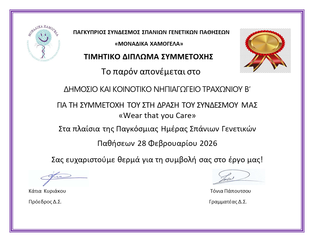 Συμμετοχή στην εκδήλωση της Παγκόσμιας ημέρας ατόμων με Σπάνιες Γενετικές Παθήσεις "Μοιράσου αυτό που σε κάνει Μοναδικό"
