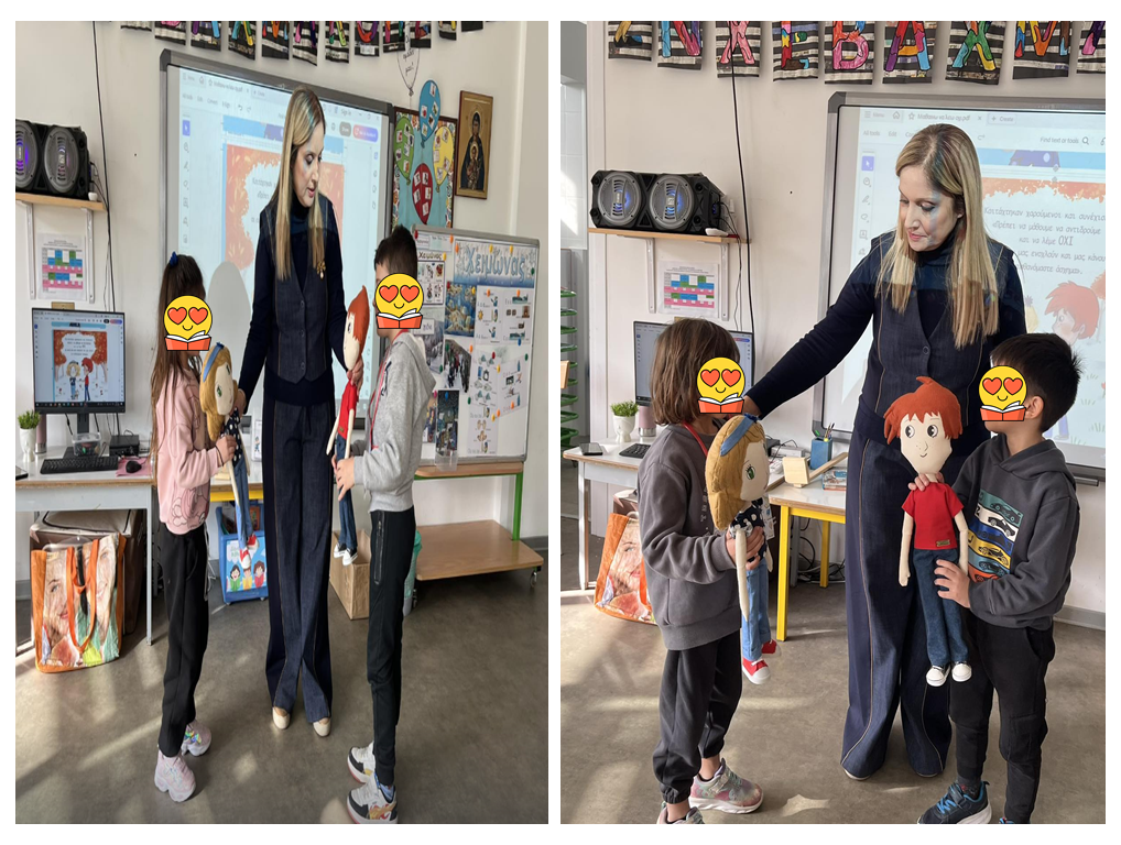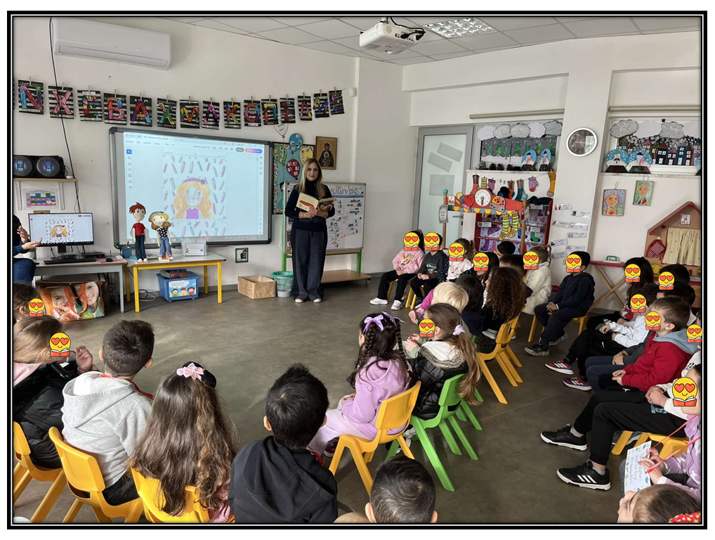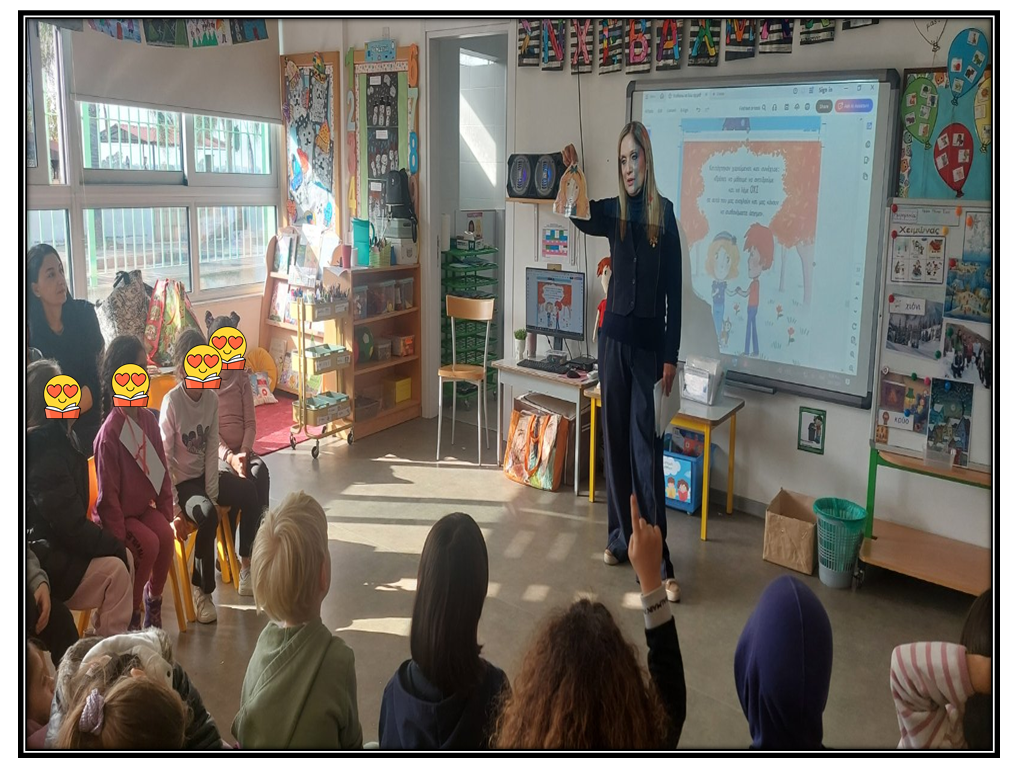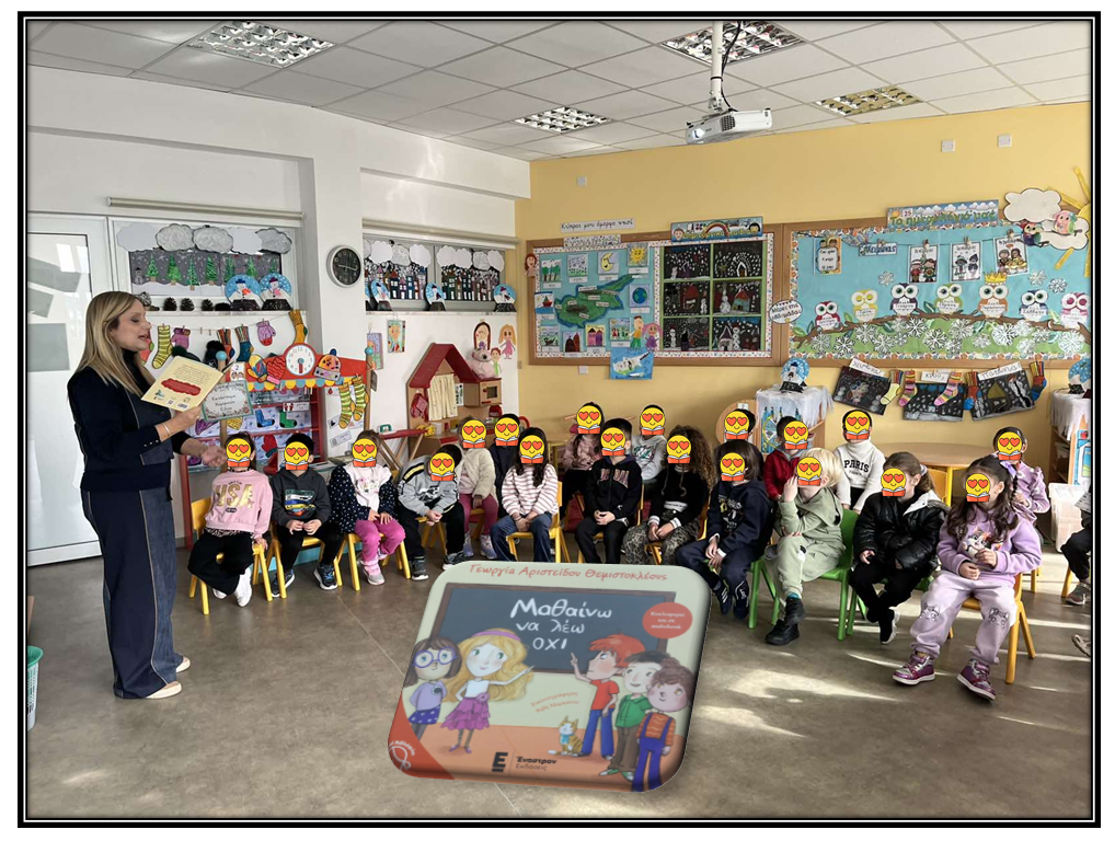 Στο πλαίσιο αυτό, είχαμε τη χαρά και την τιμή να προσκαλέσουμε τη συγγραφέα κα.Γεωργία Αριστείδου Θεμιστοκλέους, η οποία μας παρουσίασε ένα από τα αγαπημένα παιδικά βιβλία που έχει συγγράψει, με τίτλο «Μαθαίνω να λέω Όχι». Μέσα από την ιστορία, τα παιδιά είχαν την ευκαιρία να κατανοήσουν τη σημασία της λέξης «όχι», να ενισχύσουν την αυτοπεποίθησή τους και να μάθουν πότε είναι σημαντικό να λέμε «όχι».