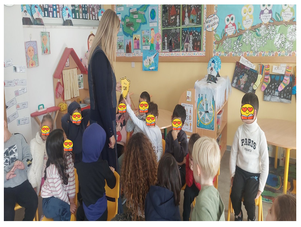 Τα παιδιά άκουσαν με μεγάλο ενδιαφέρον την αφήγηση του παραμυθιού, συμμετείχαν ενεργά στην επεξεργασία του και έδωσαν πολύ όμορφες και ουσιαστικές απαντήσεις σχετικά με το πότε λέμε «όχι» για να προστατεύσουμε τον εαυτό μας. Επιπλέον έπαιξαν θεατράκι μαζί με τη συγγραφέα χρησιμοποιώντας δύο κούκλες-ήρωες της ιστορίας και υποδύθηκαν μια σκηνή της ιστορίας κάνοντας έναν διάλογο ανάμεσα στα δύο παιδάκια, ενώ στο τέλος είχαν την ευκαιρία να υποβάλουν ερωτήσεις και να μάθουν περισσότερες πληροφορίες για τη συγγραφέα και τα παραμύθια της.